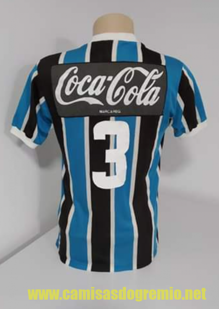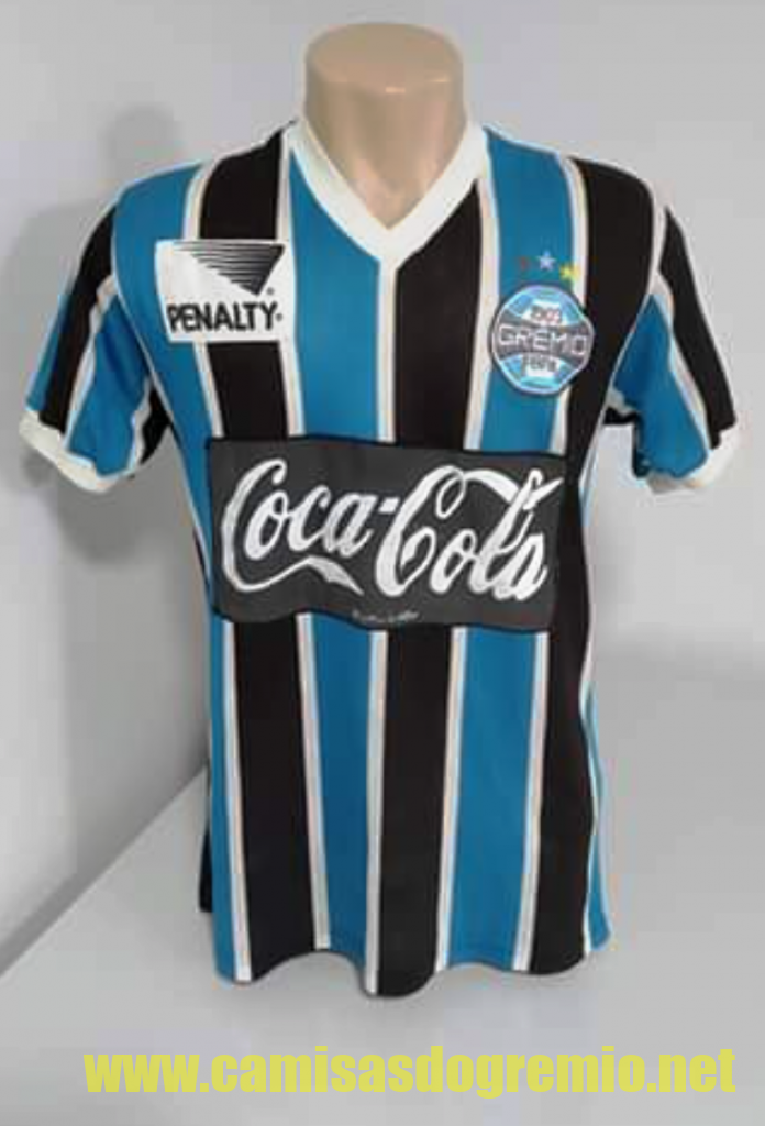 Camisa com o Penalty costurado modelo 90. É a mesma que usaram em alguns jogos porém sem o escudo da Penalty, devido àquela treta da Penalty mandar só camisas de mangas longas. O mais legal dessa camisa é ver o mesmo escudo do Grêmio das camisas de 1985 sendo reaproveitado.