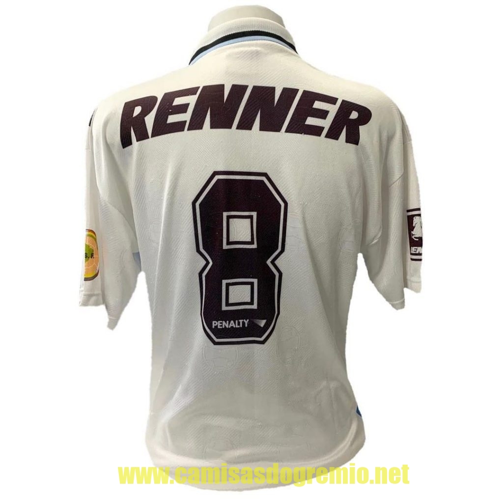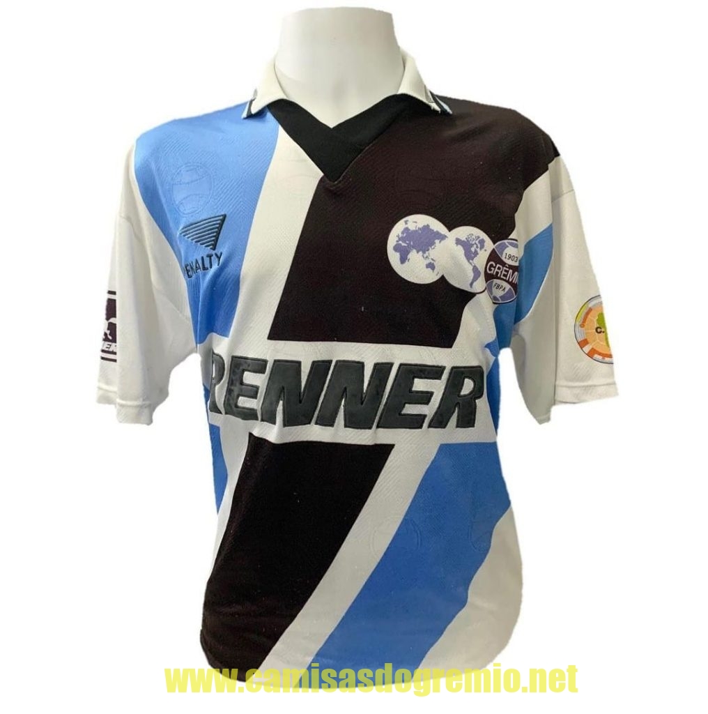 Protótipo desenvolvido pela Penalty e provavelmente apresentado à direção do Grêmio para aprovação. Essa camisa sofreu alterações até ser aprovada pela direção, tornando-se a branca que já conhecemos aqui, e que foi usada na temporada 1997.