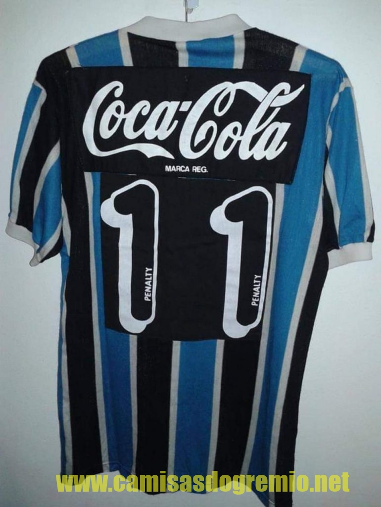 Variação da Tricolor 90 sem o logo da Penalty conforme trouxemos aqui no blog, porém com um detalhe curioso: o número arredondado e fino da Penalty (conhecido como número “palito”) aplicado sobre um quadrado preto. Não há informações dessa camisa sendo utilizada em campo (se alguém souber de algo, entre em contato). Pode tratar-se de um protótipo ou algum modelo pontual para uso em torneio no exterior, ou ainda para as categorias de base.