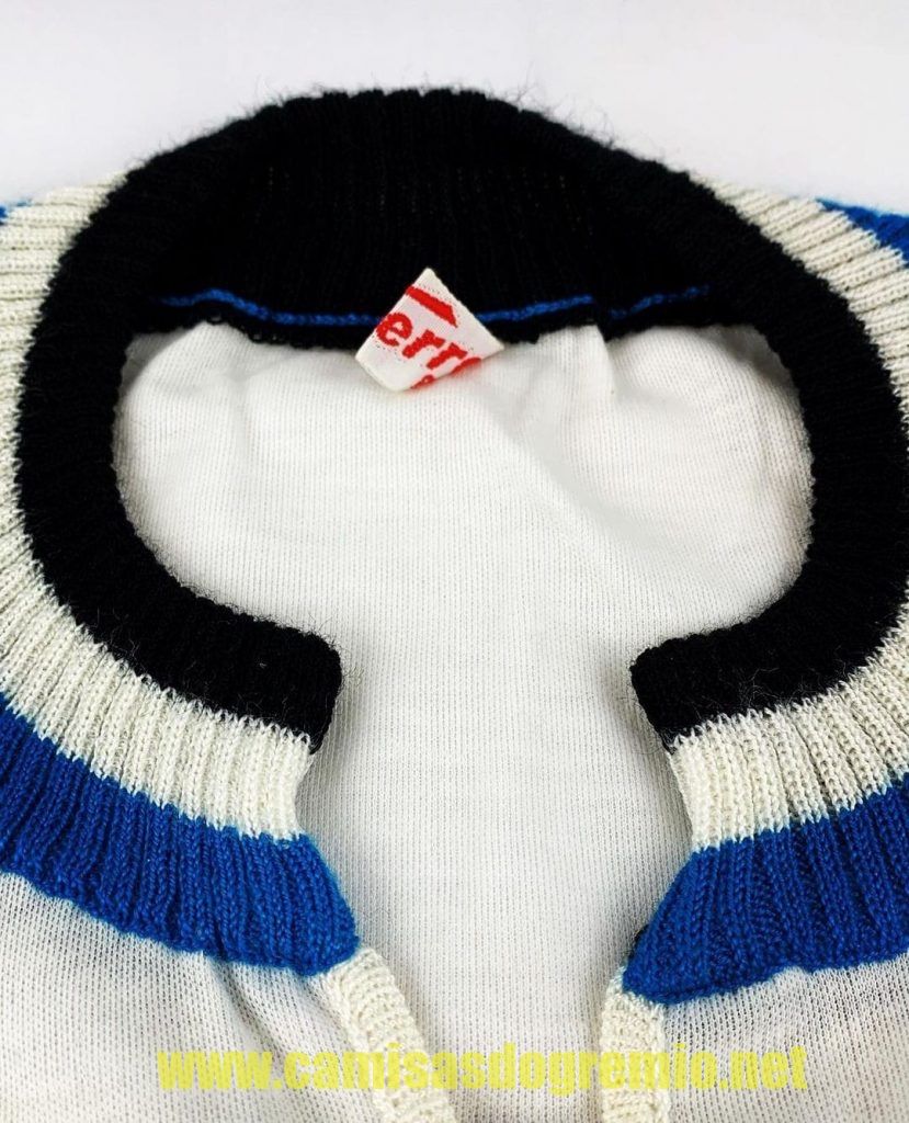 Essa é uma variação da branca 1980 já postada aqui. Aquela tinha o tecido frisado e as cores da gola invertidas (azul em cima e preto embaixo), e essa possui o tecido liso (mesmo das brancas 81 e 82) e a gola mais comum também usada nos anos posteriores (preto em cima e azul embaixo).