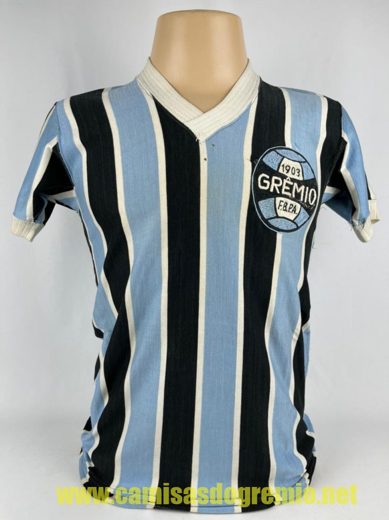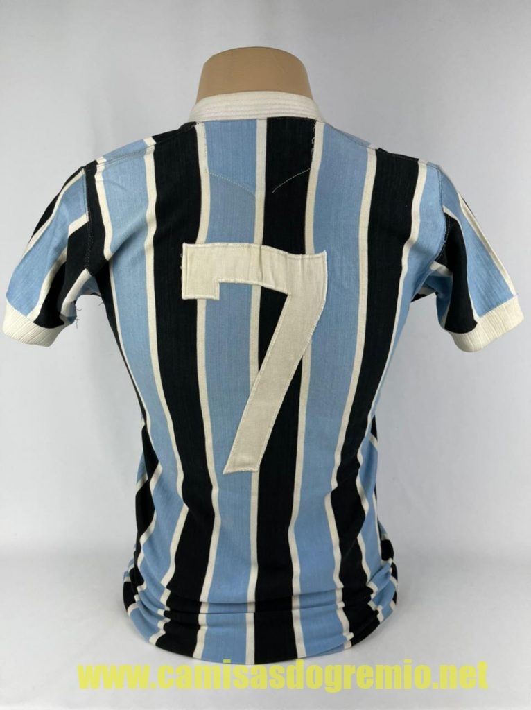 Produzida pela Malharia Cauduro, essa camisa Tricolor tem como destaque o belíssimo escudo bordado (bem maior que o tamanho costumeiramente usado nas camisas Tricolores da época).