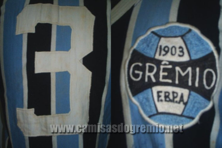 Raridade encontrada na coleção do Charles Müller e que também após inúmeras pesquisas não temos total certeza sobre seu ano. Coparei a disposição das listras, quantidade de listras, posição do símbolo, as bordas do símbolo com pôsteres encontrados no site do Gianfranco Spolaore e fotos encontradas no Acervo Histórico do Grêmio e nos pareceu bastante com a de 1967, mas devido a baixa qualidade das fotos da época não temos total certeza. Tentei encontrar alguma forma de entrar em contato com a Cauduro para ver se eles não saberiam informar o ano, mas não encontrei nenhum e-mail deles nem informações no Google. Gostaria de pedir ajuda a quem se interessar para descobrirmos o ano exato desta camisa também. Desde já agradeço!