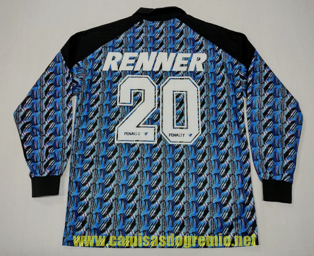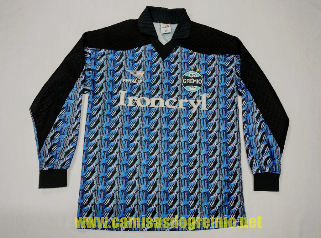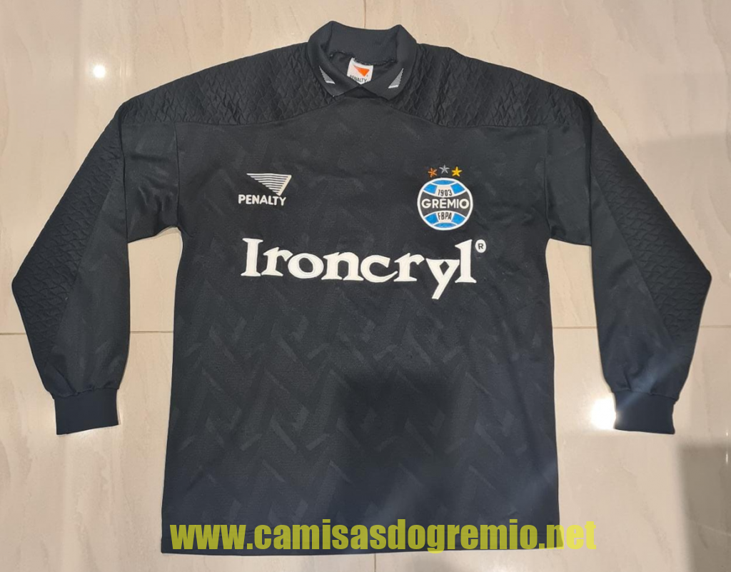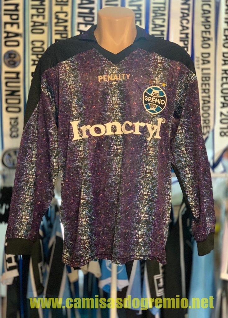 Protótipo desenvolvido pela Penalty e provavelmente apresentado à direção do Grêmio para aprovação. Essa camisa sofreu alterações até ser aprovada pela direção, tornando-se a branca que já conhecemos aqui, e que foi usada na temporada 1997.