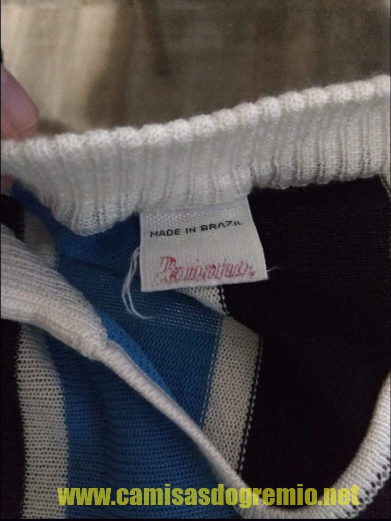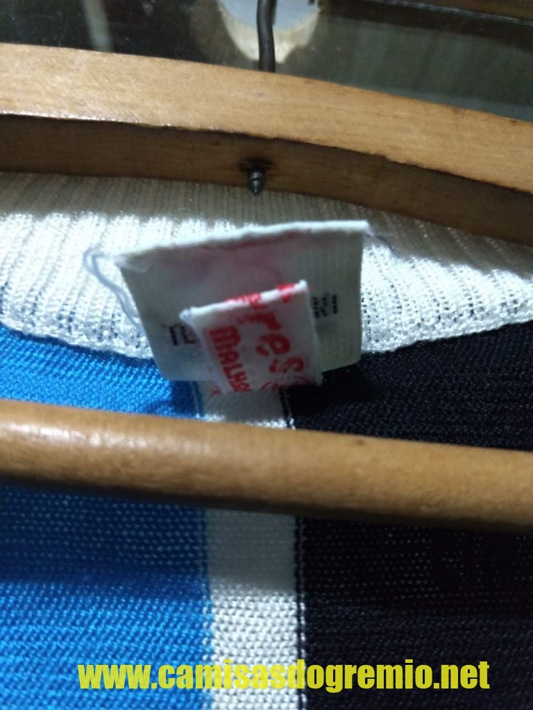 Camisa com o Penalty costurado modelo 90. É a mesma que usaram em alguns jogos porém sem o escudo da Penalty, devido àquela treta da Penalty mandar só camisas de mangas longas. O mais legal dessa camisa é ver o mesmo escudo do Grêmio das camisas de 1985 sendo reaproveitado.