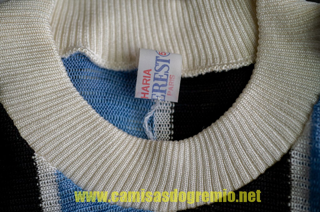 Uma das camisas mais raras já postadas nesse blog. Até então não se tinha notícia de que a Malhas Pinotti de São Paulo havia feito camisas para o Grêmio. Ao que tudo indica, fizeram apenas esse modelo branco (não há indícios de camisa tricolor feita por essa malharia). Essa da foto foi usada pelo Ivo Wortmann no famoso jogo do soco que o Everaldo deu no juiz (na foto abaixo dá pra ver ele caído no campo). Agradecimentos ao Barth por compartilhar as fotos e também a história que contei acima.