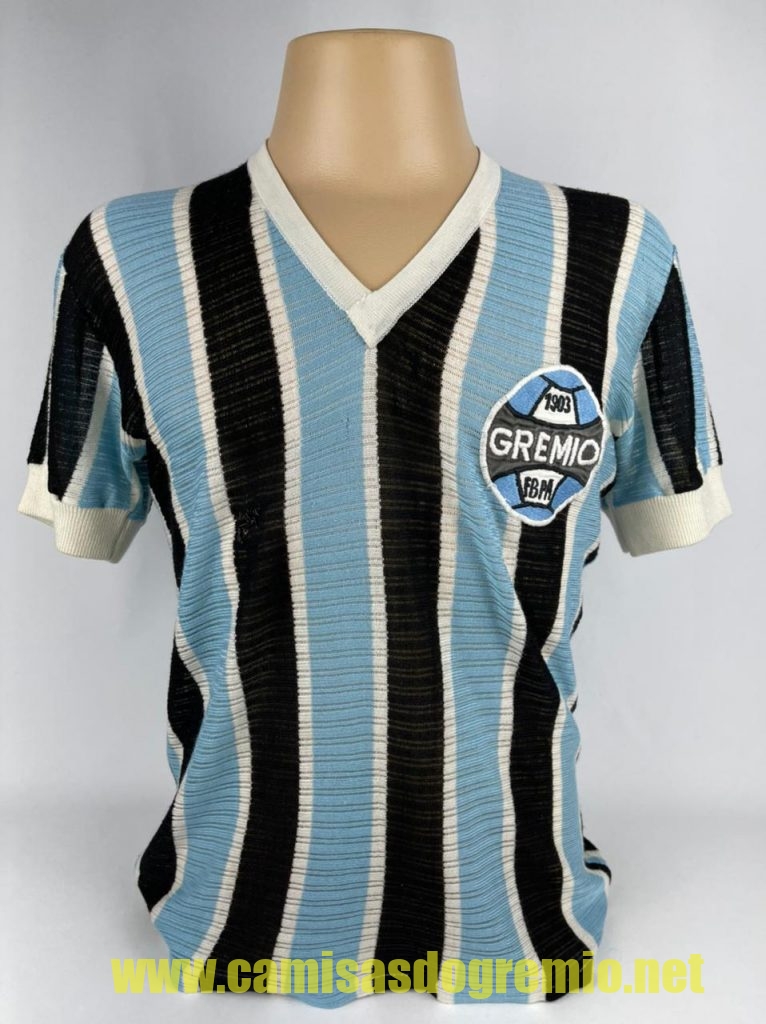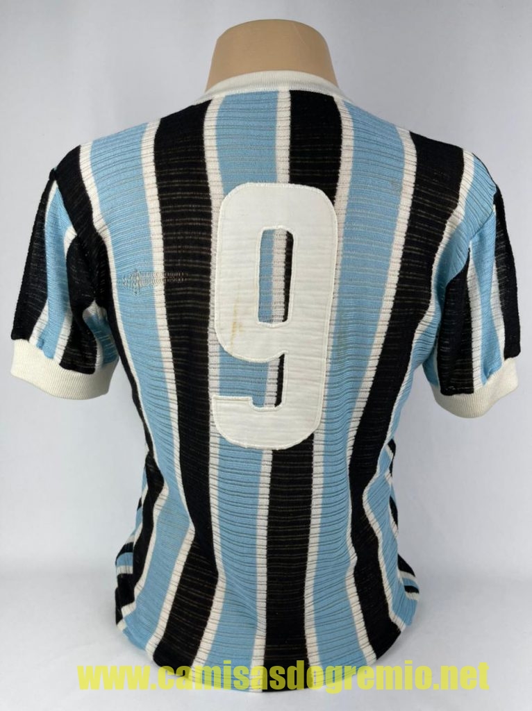Em seu último ano fornecendo camisas para o Grêmio, a Hering surpreendeu lançando essa raridade em homenagem ao tricampeão do mundo Everaldo. O grande barato é a estrela no lugar do escudo do clube. pelas informações que temos, ela foi usada uma única vez (contra o Olaria pelo Brasileirão 74). Agradecemos ao amigo Pedro Franke possuidor dessa obra de arte em seu acervo espetacular e que nos autorizou a postá-la no blog assim como algumas outras peças de sua coleção.