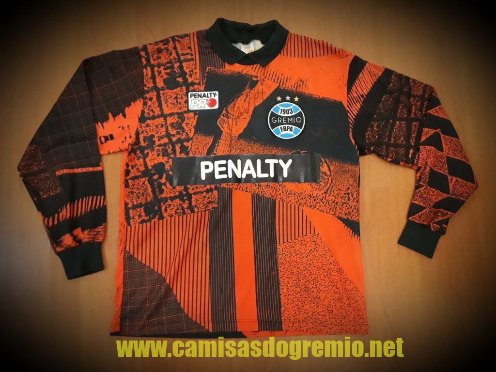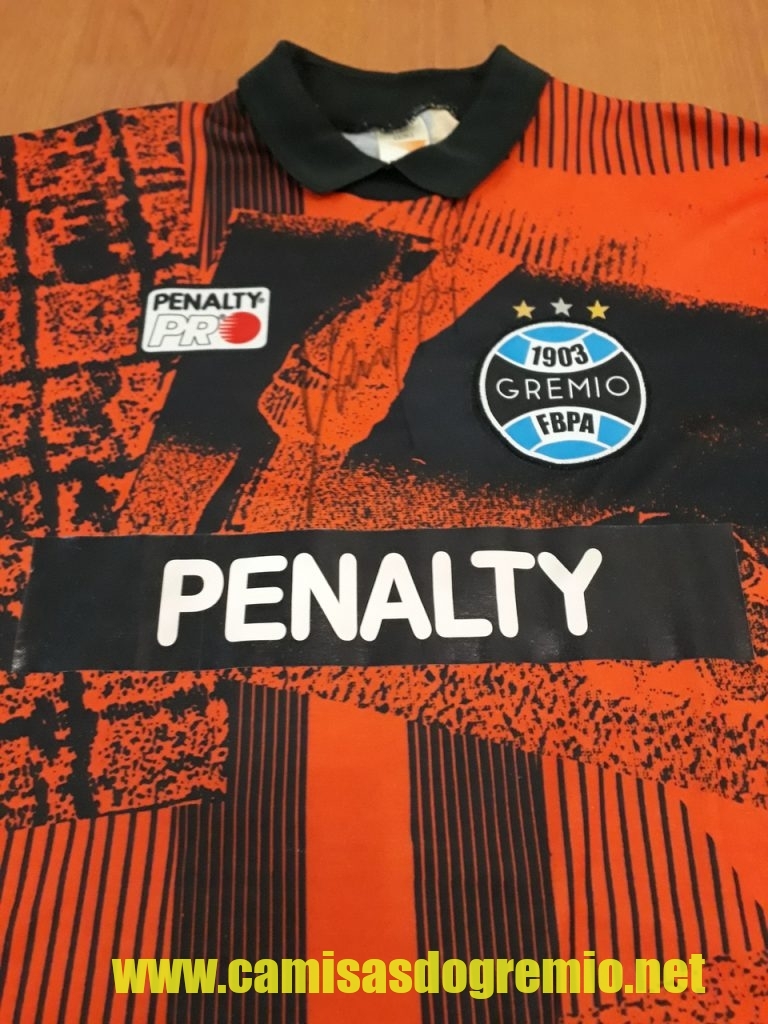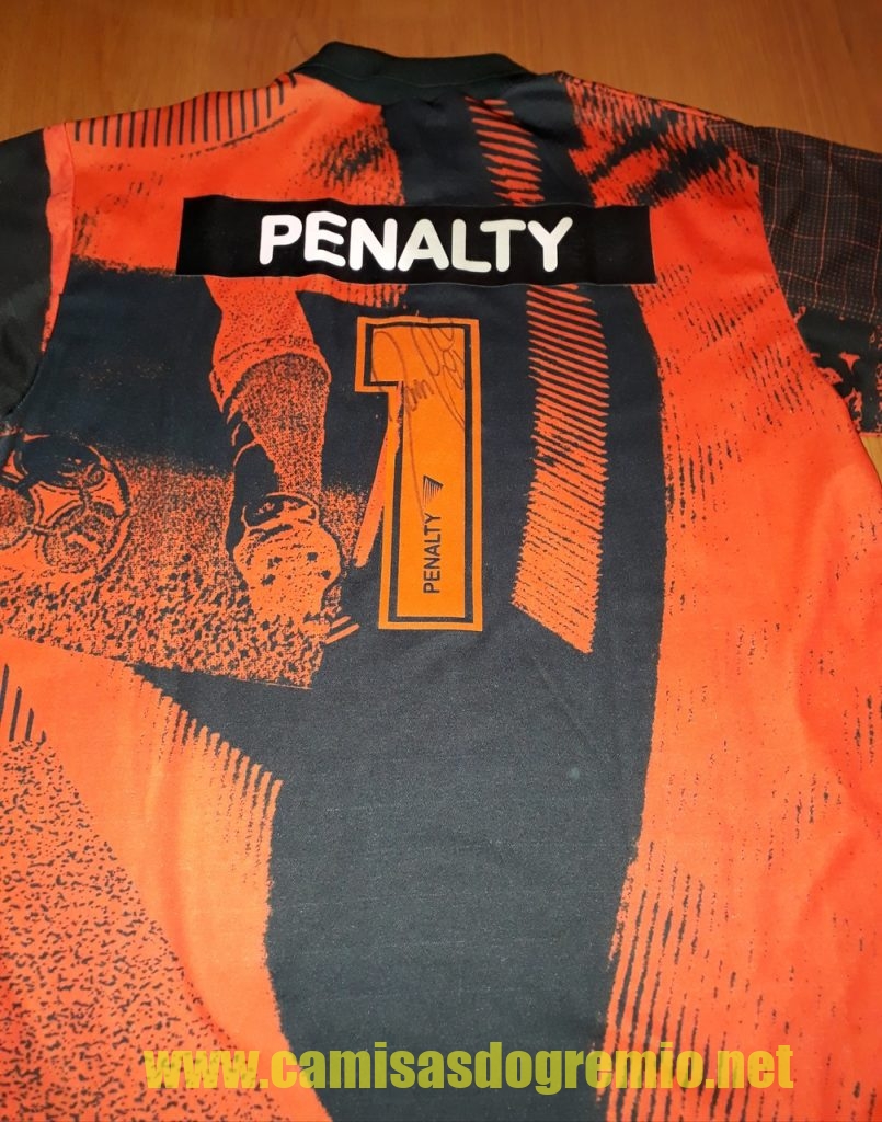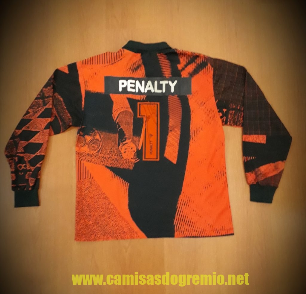 Nos anos 90 a Penalty costumava vender camisas iguais as dos times para quem fornecia, porém sem o símbolo destes. Esta é uma delas, igual a de 1993 usada pelo Eduardo Heuser que já postei aqui, mas com duas diferenças: não tem o escudo do Grêmio e nem o Penalty no número 1.