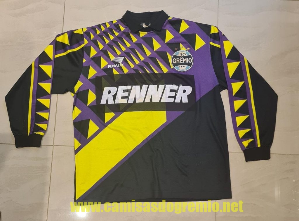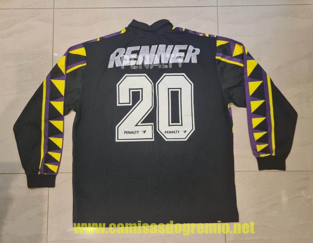 Protótipo desenvolvido pela Penalty e provavelmente apresentado à direção do Grêmio para aprovação. Essa camisa sofreu alterações até ser aprovada pela direção, tornando-se a branca que já conhecemos aqui, e que foi usada na temporada 1997.